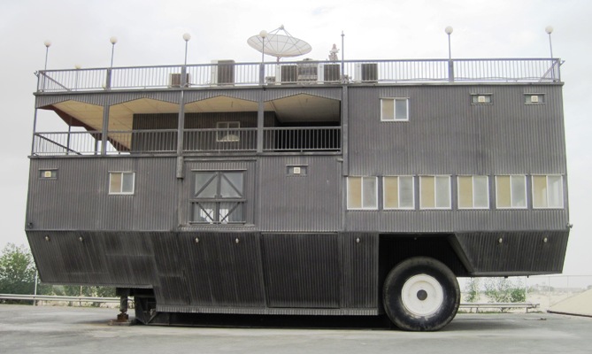 Inside the building is the world’s largest truck, a Dodge Power Wagon, 8 times the original size… He is apparently able to tow both the Globe and the huge Caravan with this truck…!! This colossal vehicle weighs 50 tons, and had four bedrooms in the cab…!!