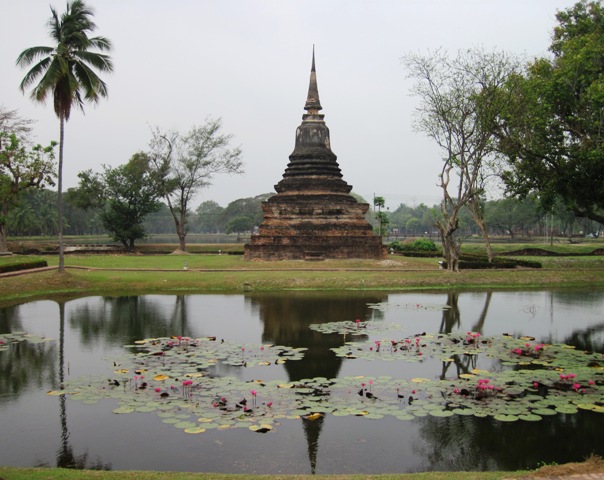 The ruins of the area cover almost 70 square kilometres, but most are concentrated in what is now known as Old Sukhothai, about 12 kilometres east of the new city of the same name… Without entering the Historical Park itself, you are able to take in many of the ruins that lie outside it, and within the boundaries of the town itself…