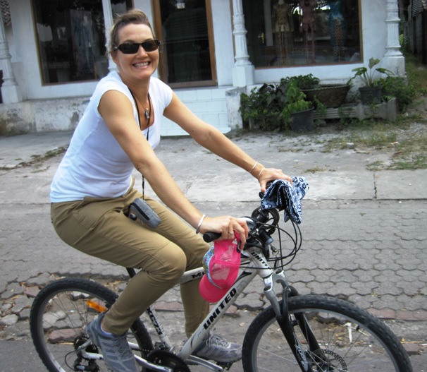 At midday, we hired bicycles, (those infernal contraptions which I have studiously ignored until very recently…) and pedaled into the village to visit the two other temples on the Pilgrim Route to Borobudur…