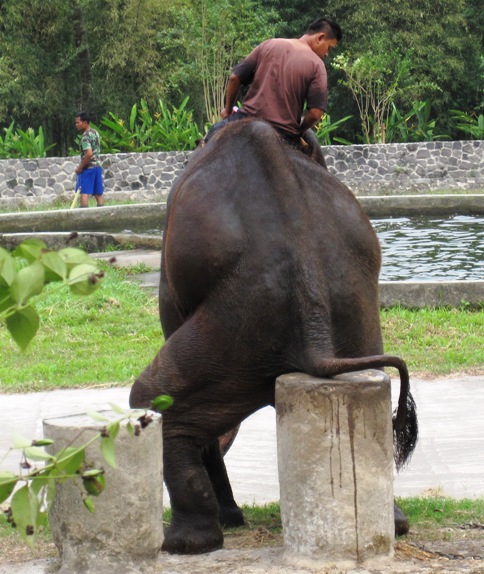 While searching for the path to the Elephant Cave on a hill nearby, we came across the stables where a small herd of elephant were being bathed and scrubbed by their mahouts…
