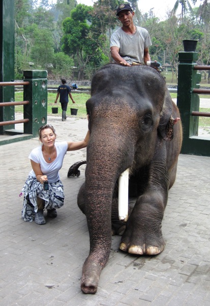 Patti was delighted to be able to touch and stroke the elephants while my mind flew back to Chitwan in Nepal, where I had spent as much of my free time as I could bathing and clambering over the herd of elephants there…