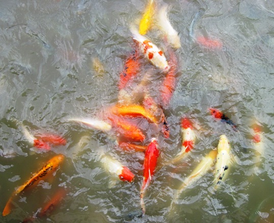 Feeding time for the Koi... Small packets of fish pellets were on sale at reception, and almost every visitor spent time and money feeding the fish...