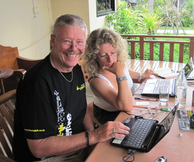 Before we left, we snapped many photos of us together, and were very kindly offered Touratech t-shirts by Peera… If you are riding your bike through Thailand, and are in the vicinity of Bangkok, stop in at Touratech and meet with Peera Lao… If he has the time, he will enjoy exchanging ideas and information with you, just as he has done with us and many other bikers…