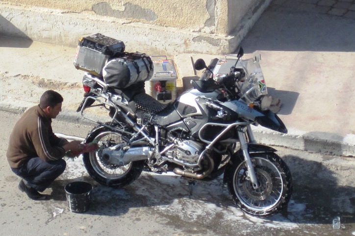 We both laughed and I finally relented and allowed him to wash the bike, after negotiating the outrageous price of R6.85 ($1.00) for the chance to see the Big Fella shiny again…!!