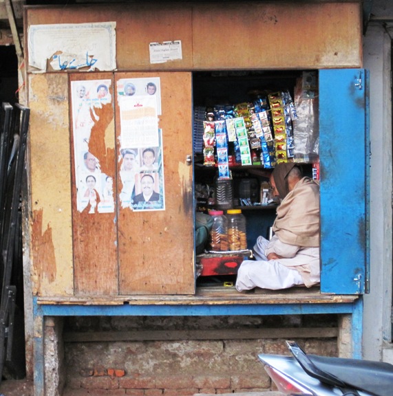 Now this is what I call a "hole in the wall" joint...!! This old fella sells biscuits and other "bits and bobs" from this over-sized cupboard, just around the corner from my hotel... Business must have been slow at the time I was passing, as he was conscientiously studying the the back of his eyelids... A very common pastime in India...