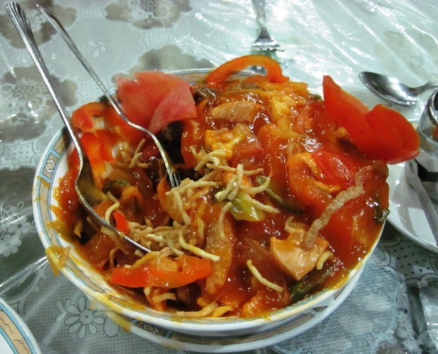 Fifteen minutes later, a huge plate of food was set down in front of me by a very attentive waiter, who could not stop telling me “what a nice motorcycle I had”…