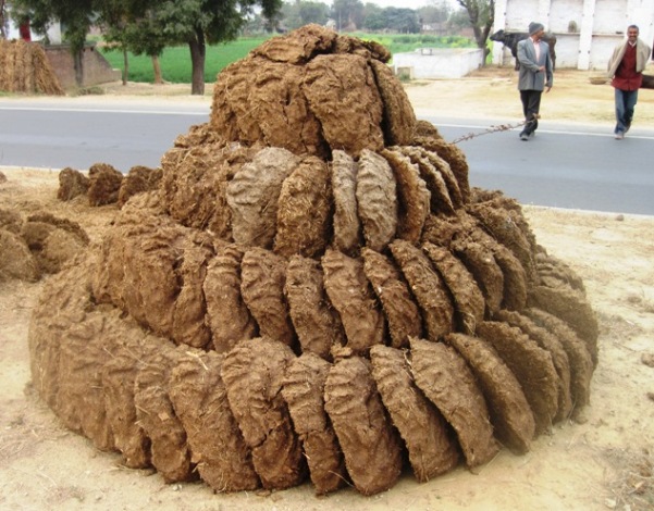 I had ridden through farming countryside since leaving Agra, and all along the roadside, “dung patties” were stacked for sale to passing motorists…