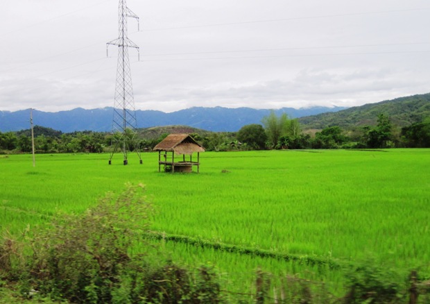 Things improved as we descended into the valley and rode through Nam Ken, Pha Chao and Hua Muang and on to the town of Kasi, where the bright green of the paddy fields once again had me slowing down to take a closer look…