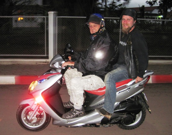 After a quick shower, we took the bikes into town, Meier riding on the back of Willi’s scooter… They made a comical pair as we zooted through the darkness… Hoots of occasional laughter came back to me on the wind…!!