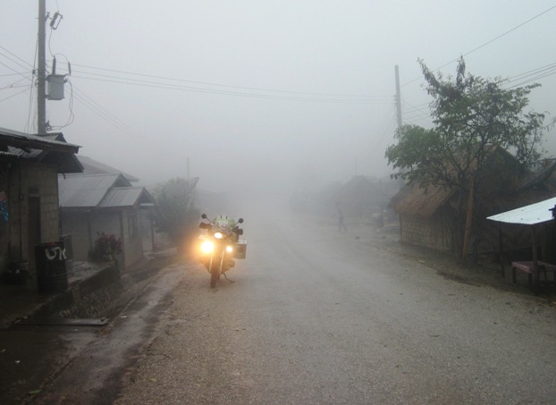 Mist shrouded village, where we stopped to take a breather... We were the only imbeciles out and about...!!