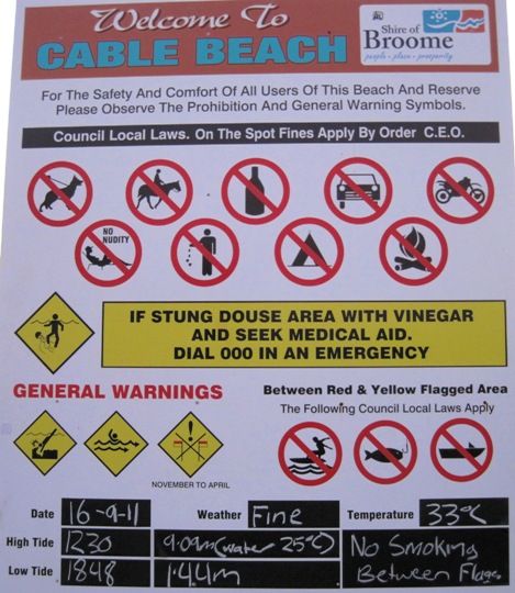 There's a heck of a lot of stuff you cannot do on Broome's beaches...!! In fact, Australia is all about making up rules for people to obey... The restrictions are endless and exasperating...!! Far too much "control" for most people's liking...!!