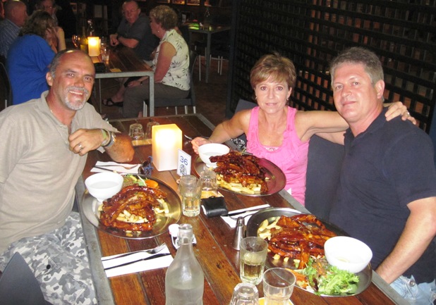 Preparing to work our way through huge plates of ribs...!! My hosts Rene and Coenie Human treated me to a night out on the town...