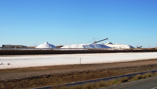 The Rio Tinto salt-works on the outskirts of Port Hedland... BHP Billiton seems to control most of the iron ore mining in the area to the north and east of the town...