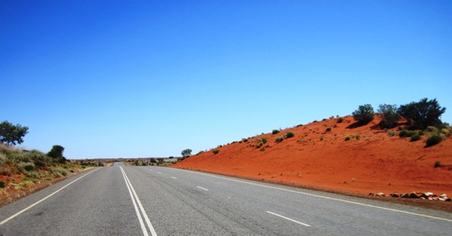 Further south, I noticed that in places, the red desert sands of the interior had marched their way over the highway, heading for the coast… A crew of workers were clearing a small section where the sand had covered the emergency lane of the highway, and they stopped to lean on their shovels as I zoomed past… I was probably the most interesting thing they would see all day…!!