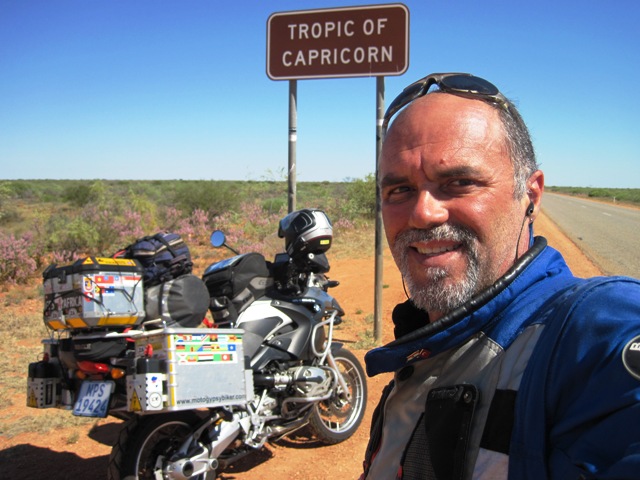 About a hundred kilometres past Yannarie, I saw a sign that had me grabbing clutch and brakes, and after doubling back, I stopped to take a photo that showed I was crossing the Tropic of Capricorn… This imaginary line of latitude marks the most southerly point on the earth’s surface where the sun appears directly overhead… The Tropic of Capricorn passes through just 10 countries; four in South America, five in Southern Africa, including Madagascar, and of course, Australia…