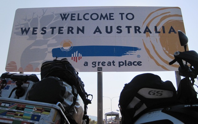 About 45 kilometres short of Kununurra, we came to the state border… Here we had to get off our bikes and surrender to a quarantine inspection… The officer on duty checked our panniers and asked us a series of questions regarding any food we were carrying…