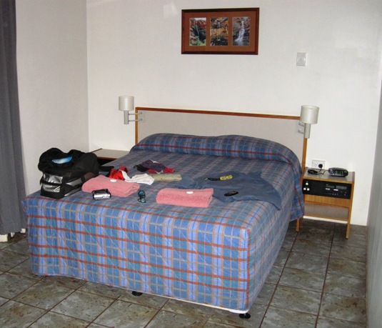 I wanted a comfortable bed, so while Andy rolled out his “swag”, (a large bedroll that needs no assembly whatsoever…!!), I headed back into town and found a room at the Kununurra Hotel…