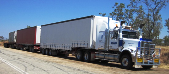 These road trains are often made up of three 12 metre long trailers, or four 10 metres trailers, and show a pretty handy turn of speed considering their massive length and size…!!