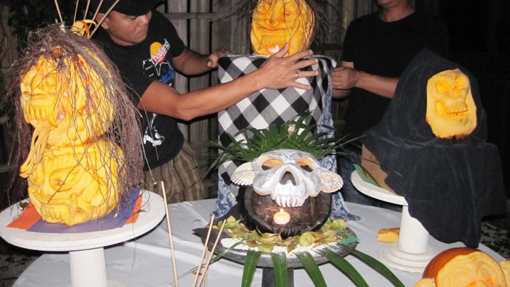 Barong was decorated to look as though an industrious army of spiders had been at work there… Large spiderwebs were strung between the trees and on any other surface available, and an enormous blow-up spider was hung near the entrance…