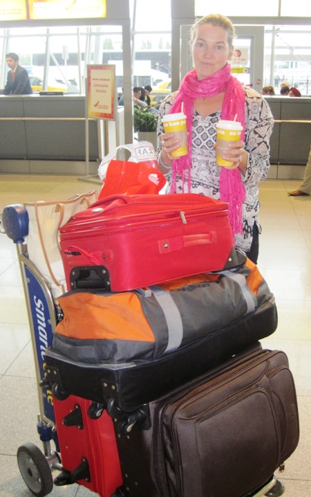 We arrived with far more luggage than we had set out with…!! Patricia could not wait to get a “decent” cup of coffee, after the long flight…!!