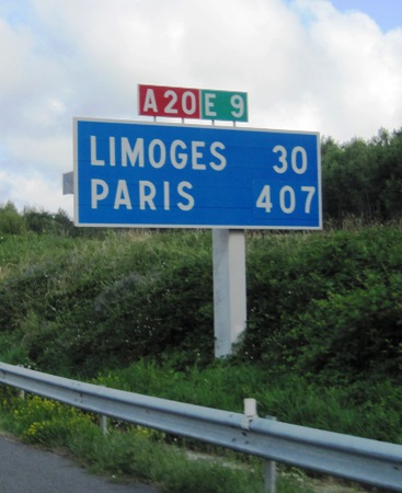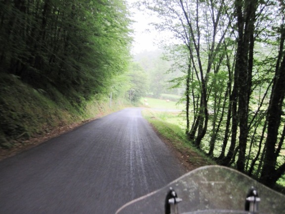 We headed due north toward Limoges, the bike handling the wet surface much better than it had done on the way up from Andorra… Perhaps I had managed to adjust to the conditions, but still it wasn’t easy… The roundabouts in the towns and villages slowed us down, and were especially slippery, as the trucks tend to drop oil when they slow down to negotiate the turns, and the accumulation of this, combined with the rain, made for a few hairy moments…
