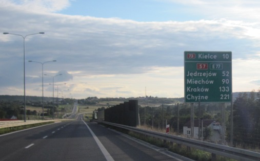 From Warka, light rain fell throughout the ride to Krakow, although there were areas of bright sunshine that I occasionally rode through… I recall passing thousands of acres of apple orchards before getting onto the E77 that ran south, crossing the Pilica River, and later the Redomka River, just south of Jedlinsk, where the traffic began piling up…
