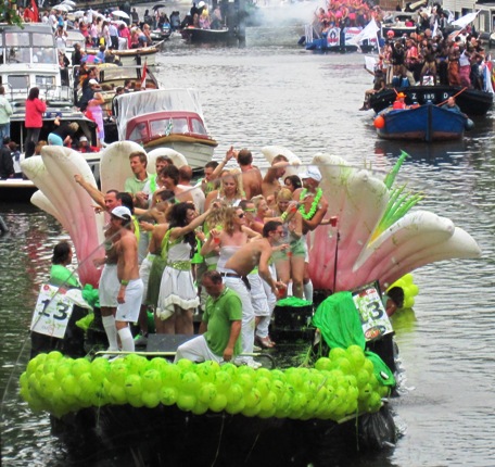 A massive crowd lined the banks of the canals to watch the barges float by... Even the Jewish chapter of the Gay Brotherhood was there...!!