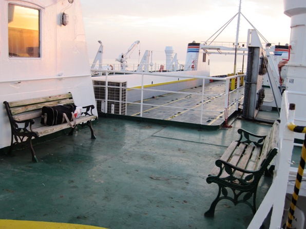 Our ferry, the Ro Ro Mersin, was not equipped to carry passengers, but catered for trucks and their drivers only… As a result, there was no lounge and comfortable chairs to sit on, only a few hard wooden benches on the upper deck…