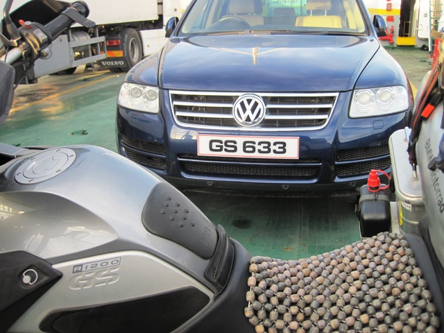 While waiting to be loaded, I met Tekin Mursel, a retired Turkish Cypriot, who was going over to the mainland to do some maintenance on a house he had built there… He later shared his lunch with me while we sat in the comfort of his VW Taureg, which along with the Big Fella and a lone truck, were the only vehicles on the upper deck…