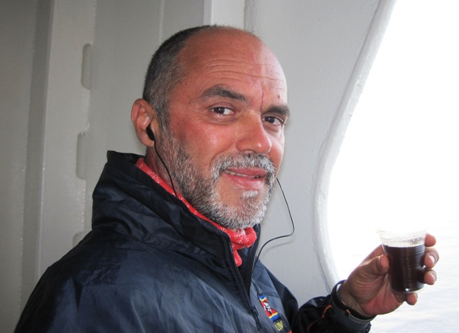 Tekin, on the left, watched as we finally left the shores of Cyprus... The old geezer on the right spent at least ten minutes chatting to me before he realised I couldn't speak Turkish...!!