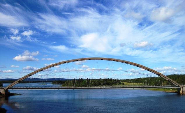 The sunny skies I had been riding under vanished, and were replaced by a solid layer of cloud, all the way to the Finnish border town of Overtornea… It was warming up nicely, the further south I rode, that is to say, that the temperature was getting into double figures at last…