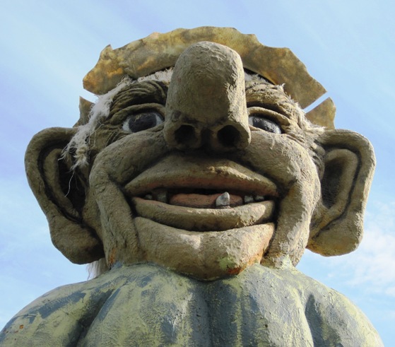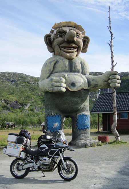 I left Bjerkvik as early as possible the next morning and headed for the Swedish border town of Riksgransen… Just before the border, I passed a massive statue of a Troll and turned back to take a few photos… It stood next to a deserted building on the side of the road… I assume this must have been a roadside diner or tourist stopover in days gone by… The Troll stood alone, a tree trunk as a walking stick…