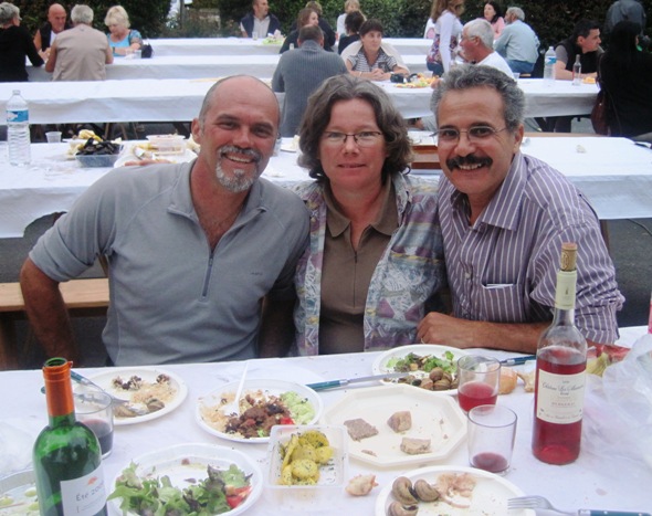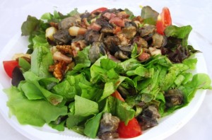 Later that evening, we went to the village of St Cyprien, and enjoyed a meal in an outdoor food market, sipping wine, and enjoying snails, salads and the music from a small group of guys, playing their accordions while they walked between the tables… It was a very festive evening, rounded off with more wine when we got home…