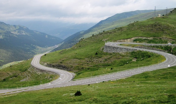The road out of Andorra was a bit of a tester so early in the morning… It wound its way out of the capital towards the French border, twisting and turning through the little villages that line the exit route out of this small and mountainous country… We climbed through Encamp, then L’Aldosa and on to Soldeu, where I was faced with the choice of either going through a long tunnel cut straight through the mountains, or taking the “scenic route” up and over the mountains… Traffic was surprising heavy, with trucks and camper vans heading out of Andorra and into France… Most of them were taking the short cut through the tunnel, so I decided to avoid the rush and go up over the mountain…