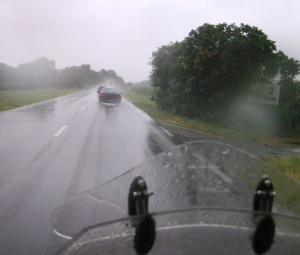 After negotiating the 253rd roundabout for the day, the Big Fella and I decided to leave the country roads we had ridden on since the Andorran border, and head for a motorway, where we could crank up the speed and get this wet ride over as quickly as possible… We headed north towards Limoges, passing through Pompignan and Montauban, before leaving the main road around Cahors, and heading back into the beautiful countryside of southwestern France… Maize and Sunflower fields lined the road, the bright splash of yellow in between the green of the maize and other crops brightened up the day for me…