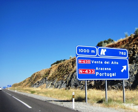 I stopped at Rosal de la Frontera to refuel, just shy of the Portuguese border. The service station was in the middle of nowhere by European standards, not another building or structure in sight… The place looked and felt deserted, but as I pulled up, a young man rushed out and actually filled the Big Fella’s tank for me…!! I knew there had to be at least one pump jockey in Europe, and I found him on the Spanish border…!!