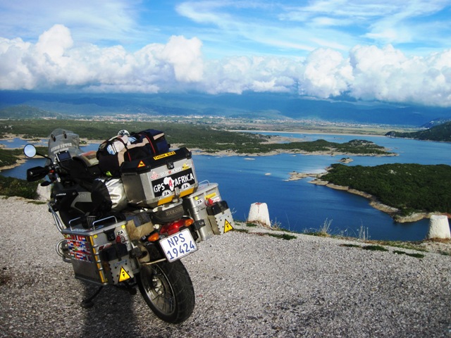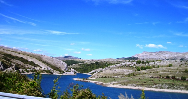 After what seemed like ages, we came to the main road leading to Niksic, on which we were able to get back up to top speed, trying desperately to make up for lost time… Above the city, we stopped to admire the amazing views out over Lake Slano…