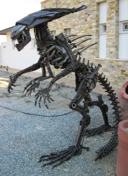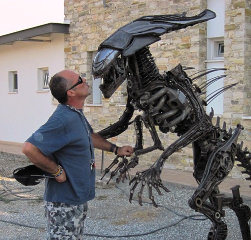 Willi dabbles in metal sculptures himself, and had manufactured a number which he has sold in the past… Neither of us could believe the detail of the one we were looking at, and spent a long time going over the various components that had been used to make the Alien…