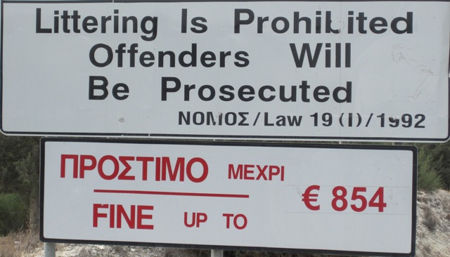 South Africa needs a few signs like this one, which are posted every 5 kms on the Cypriot motorways...!! It is unclear how the fine came to be €854 exactly...!! Not surprisingly, there is not a lot of litter on the roads...!!