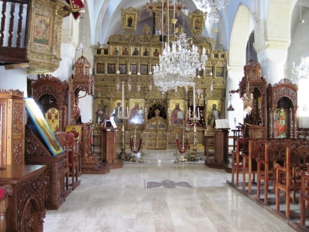 A church was built above the cave, and later expanded to become the monastery that it is today… Although a large sign forbids the taking of photographs within the church, the monk on duty was busy entertaining a young child, who was bouncing up and down on his lap, and while he was thus indisposed, I took the opportunity to snap a few pics…