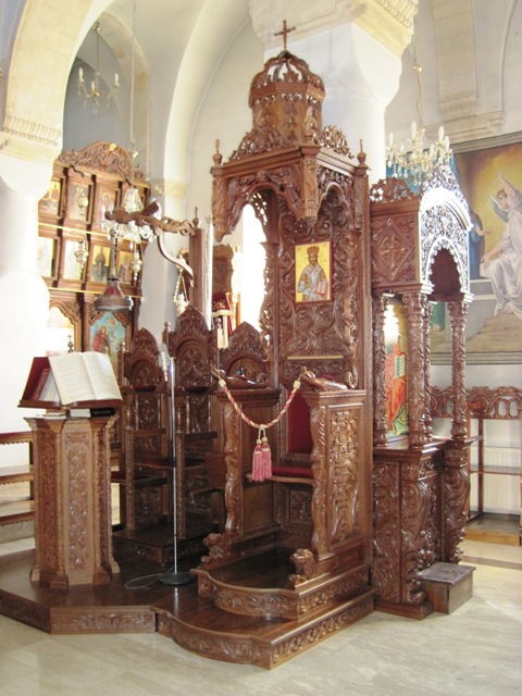 The small chapel is crammed with religious artifacts and icons… An ornately carved dais dominates the right hand side near the front of the church, and this more than anything attracted my attention… It was beautifully made, and made up of hundreds of pieces of interlocking walnut timber… It is known as the Throne of the Holy Cross, and serves as a crypt for the original cross found in the cave below the floors of the chapel…