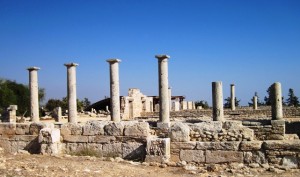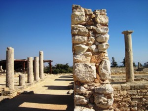 There are far more columns still standing here than at Kourion itself, and these clearly show the position of the various buildings and their relation to the temple…