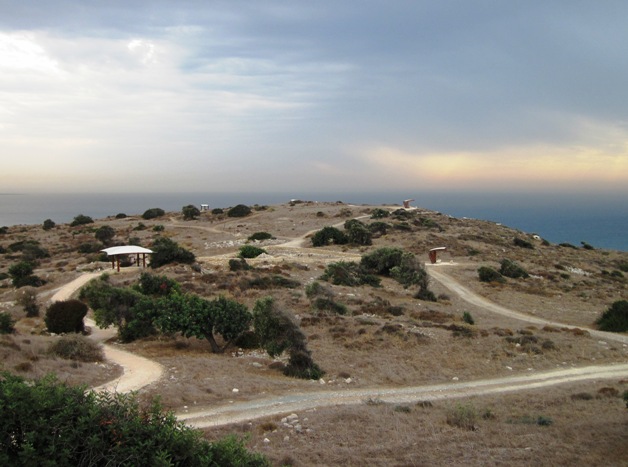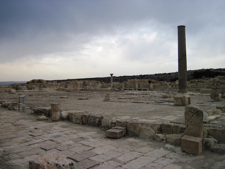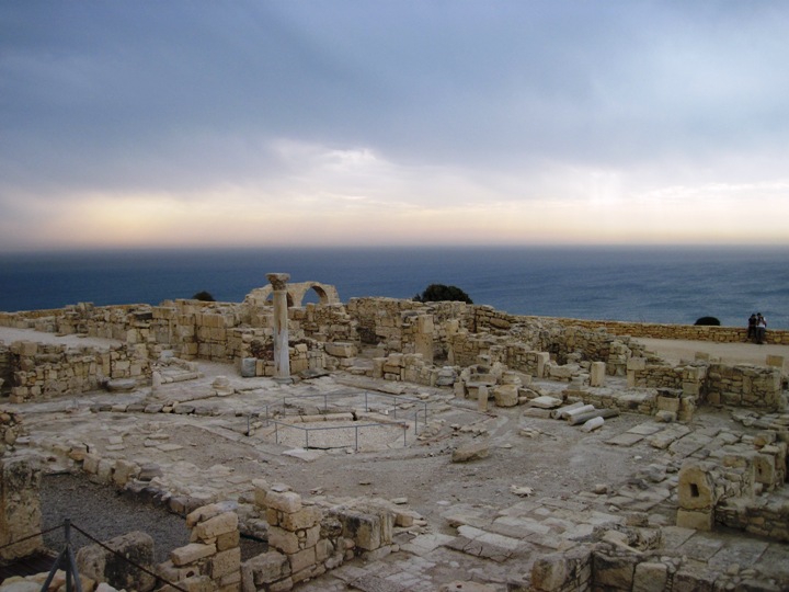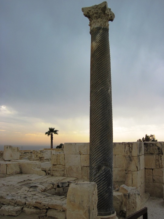 I stood near the outer walls of the Basilica, watching a rain squall out over the Mediterranean, wondering if it would reach the shore and make my return to Larnaca a damp one… For a change, the wind was a friend, and blew the dark, rain-filled clouds away to the west, allowing me to continue my stroll through hills on which the ancient city was situated…