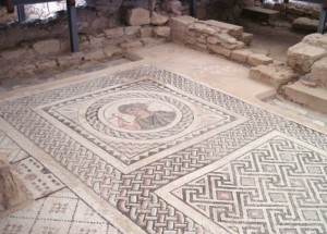 A well preserved mosaic floor is probably the most striking aspect of what remains of this structure, and an inscription in the atrium that reads “ENTER TO THY GOOD FORTUNE AND MAY THY COMING BLESS THIS HOUSE”…