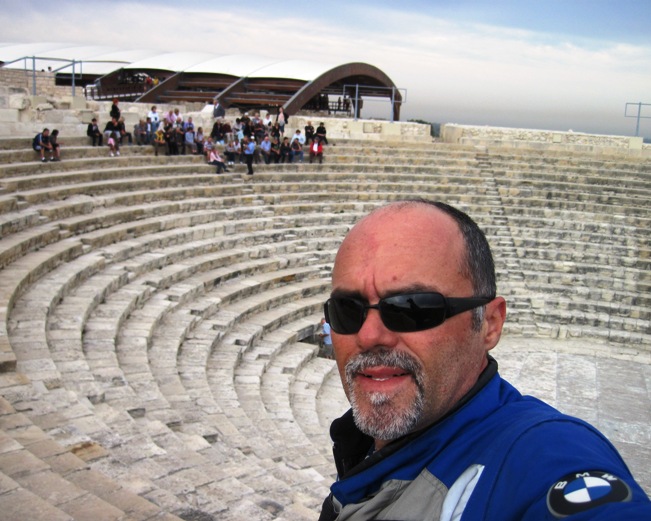 A short distance from the House of Eustolios, I entered the large “Theatre”, where the public could witness gladiatorial battles… This structure is built in a semi-circle, facing out towards the sea, and is still used to day for musical and theatrical productions…