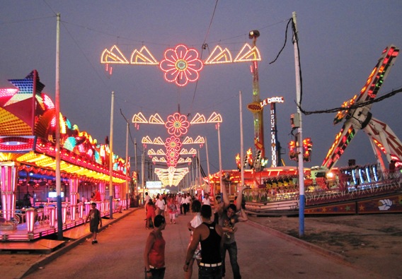 On my last night in Gibraltar, we crossed into Spain (on foot!) and visited the annual La Linea Fair. At this time of year, there are many fairs taking place all along the Costa del Sol… It is a very festive time for all the inhabitants of the towns which the fairs are staged in… People save up all year to spend their money at these fairs, which run for about a week in one town, before moving on to another, usually leap-frogging other towns where fairs are already in progress…