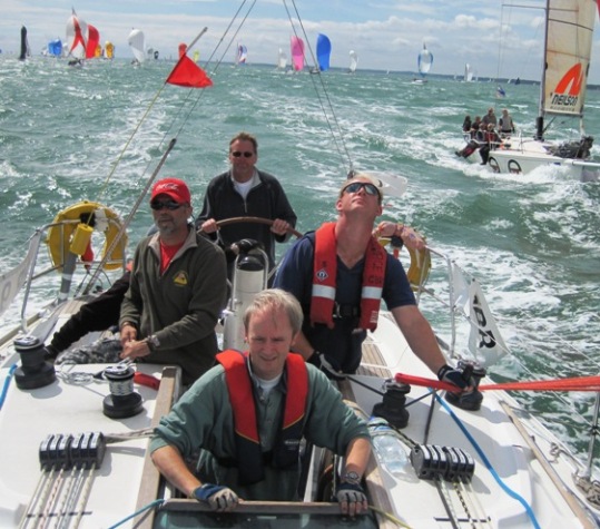 I have no idea how we got through the chaos without touching any of the other boats… Neither, I am sure, did the rest of the crew or fleet for that matter…!! When we got back to Cowes, we fully expected to be called into the committee room to hear a long list of official objections from other boats in the race, many of whom had been “fouled” by Borge’s little maneuver, and had to take evasive action to avoid collision and possible sinking…
