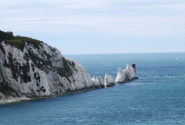 The Needles, a rocky outcrop on the western tip of the Isle of Wight... A few years ago we had sailed straight through them in an attempt to get ahead of the rest of the fleet... Some of the crew still wake up screaming at the memory of that day...