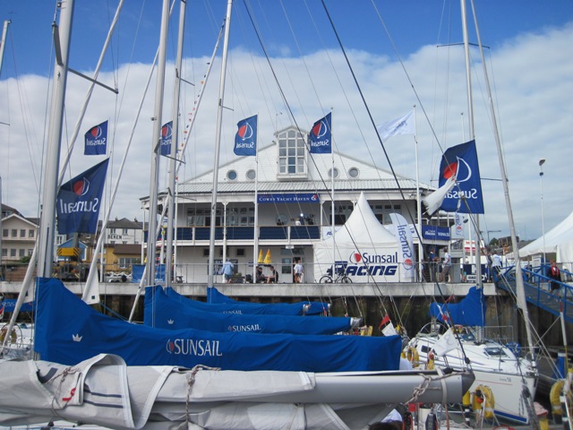 What I would have liked to do, was find a quiet spot to try and sleep off the effects of the night before, but that was not possible, as the “room” I was staying in would be a few miles offshore for most of the day…!! Antonia was also feeling the effects of evening before, and decided to give racing the yacht a wide berth as well… While the boat sailed out to the start of the day’s race, we walked along the shore to watch the hundreds of yachts take up their positions for the start… About 800 yachts were taking part in this year’s Cowes event, and were divided up into many different classes according to their sizes… Our yacht was part of a fleet of about 40 boats… SunSail 38 is a 37 foot cruising yacht, and needs to be crewed by at least six able-bodied people… I do not believe the term “able-bodied” applied to anyone that morning, but Borge still managed to get a 6th position in the race…