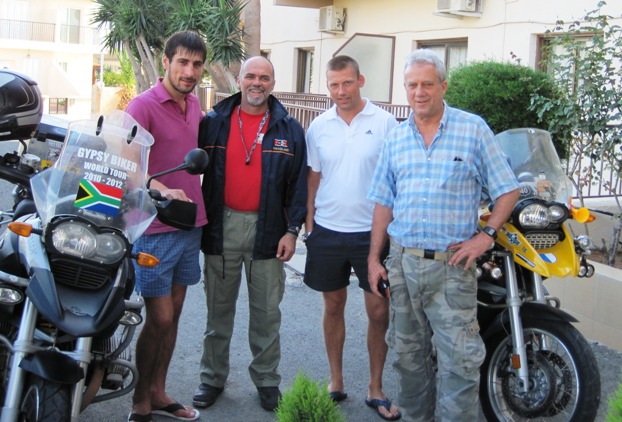 The boys from Daghistan pose with Willi and I... They are part of the Russian Tri-Athlone team, who are on a training camp here in Cyprus, and staying at our hotel...